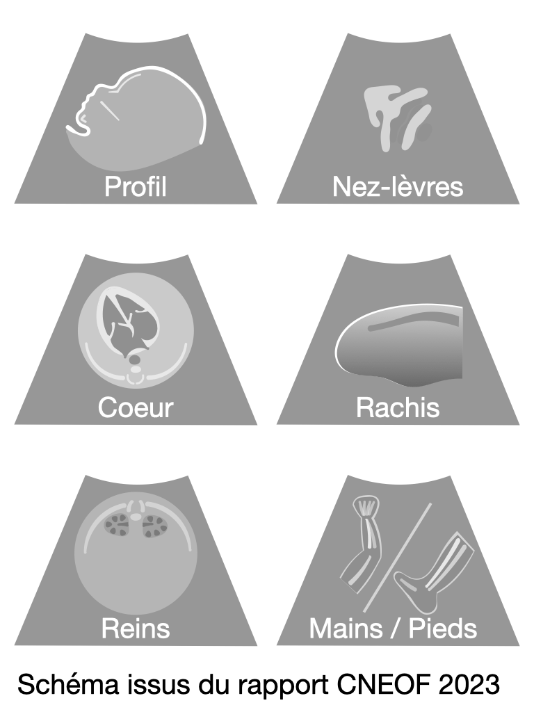 Ces structures à vérifier ne sont pas choisies au hasard par l’échographiste, mais sont imposées par le rapport le College National d’Échographie Obstétricale Feotale (CNEOF). Celui-ci a été modifié en 2023 et dicte les nouvelles recommandations.