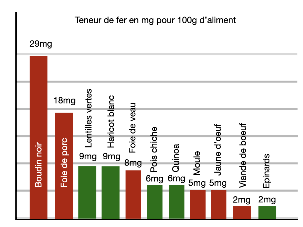 - Le fer d’origine animale est mieux absorbé que le fer d’origine végétale.